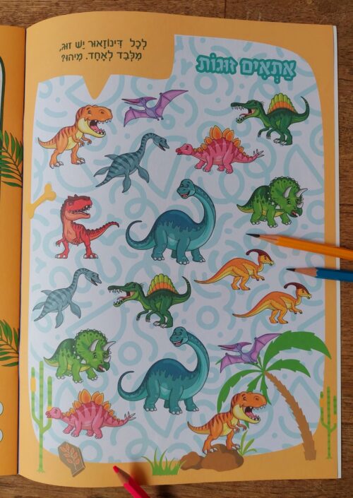 שיניים חדות, זנב ארוך, כנפיים עצומות או סנפיר צבעוני, כל דינוזאור והסגנון שלו. חלק מהדינוזאורים היו צמחוניים, חלק מהם היו טורפי-על, אבל כולם היו סוגים שונים של לטאות מיוחדות במינן, שנכחדו לפני עשרות מיליוני שנים. ביחד הם מחכים לך בין דפי החוברת, למשחק, יצירה, למידה והנאה אדירה.