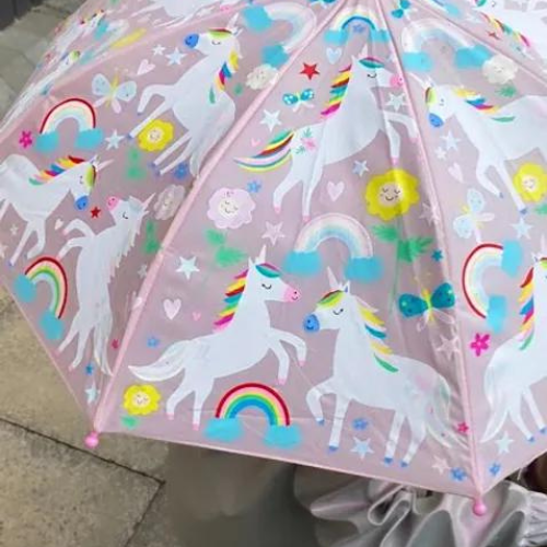מטריית קסם שתריץ את הילדים לגשם! חלקים מהציורים עליה מחליפים צבעים כשהמטריה נרטבת.