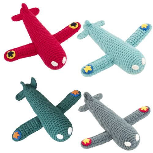 רעשן מטוס סרוג בעבודת יד. נעים למגע ומשחק.