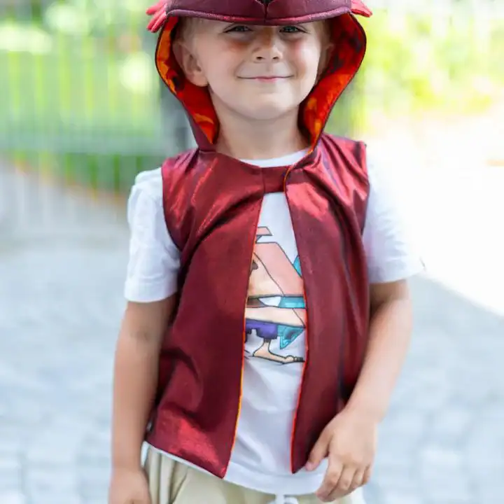 אפודת דרקון מתאימה לכל עת ולא רק בפורים, כתוספת מדליקה לארגז התחפושות, מאפשרת לילדים לעוף עם הדמיון קיימת בשתי מידות לבחירה
