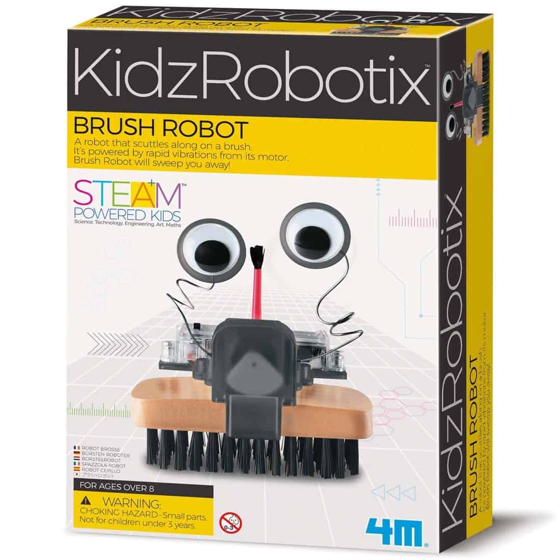 ערכת רובוט מברשת מכילה: מכסה מנוע, פלטת בסיס, מחזיק למברשת קטנה, משען למברשת גדולה, מארז סוללה עם מכסה, מברשת גדולה, מברשת קטנה, זוג עיניים זזות ואחורי עיניים, מנוע, בריחים ואומים, ברגים, 2 חוטי עיניים, 2 מכסי מסוף והוראות מפורטות.