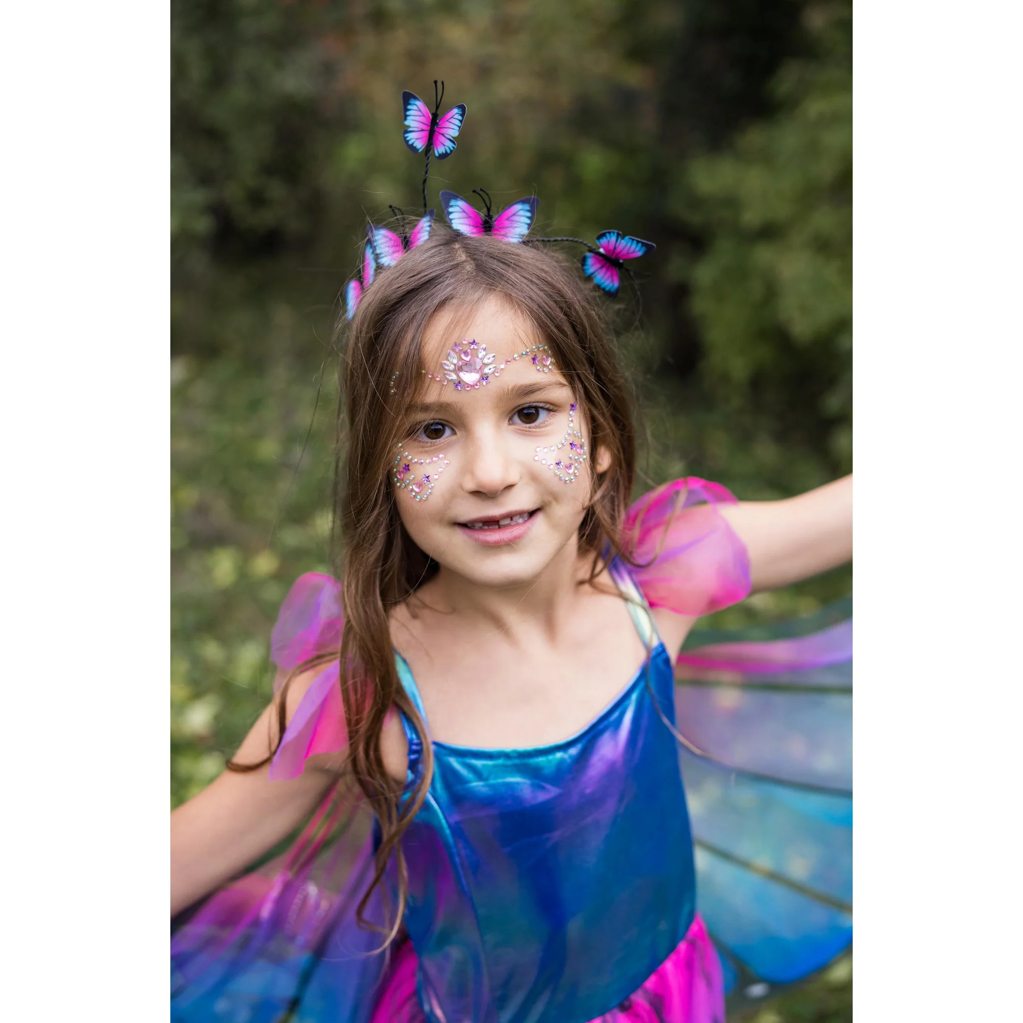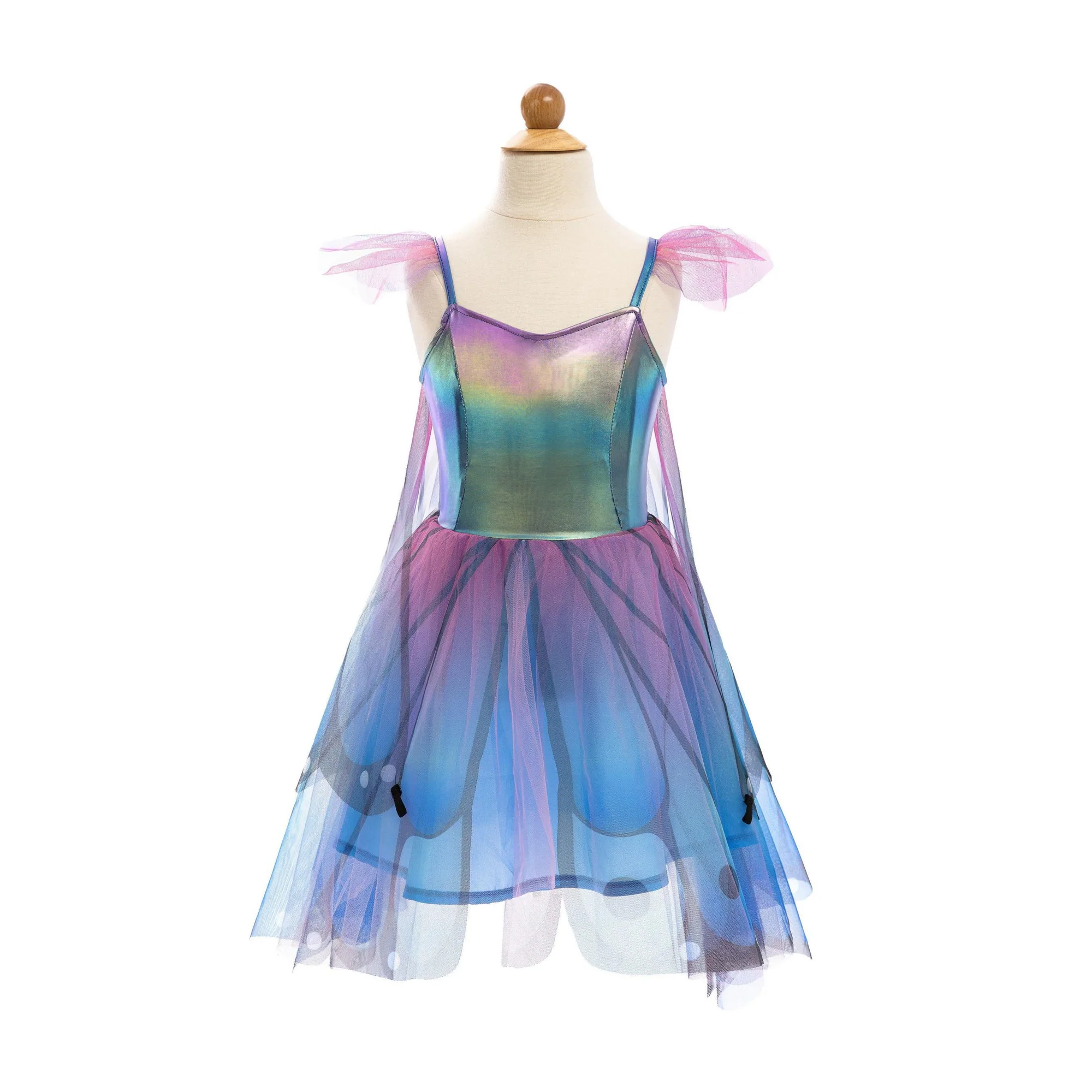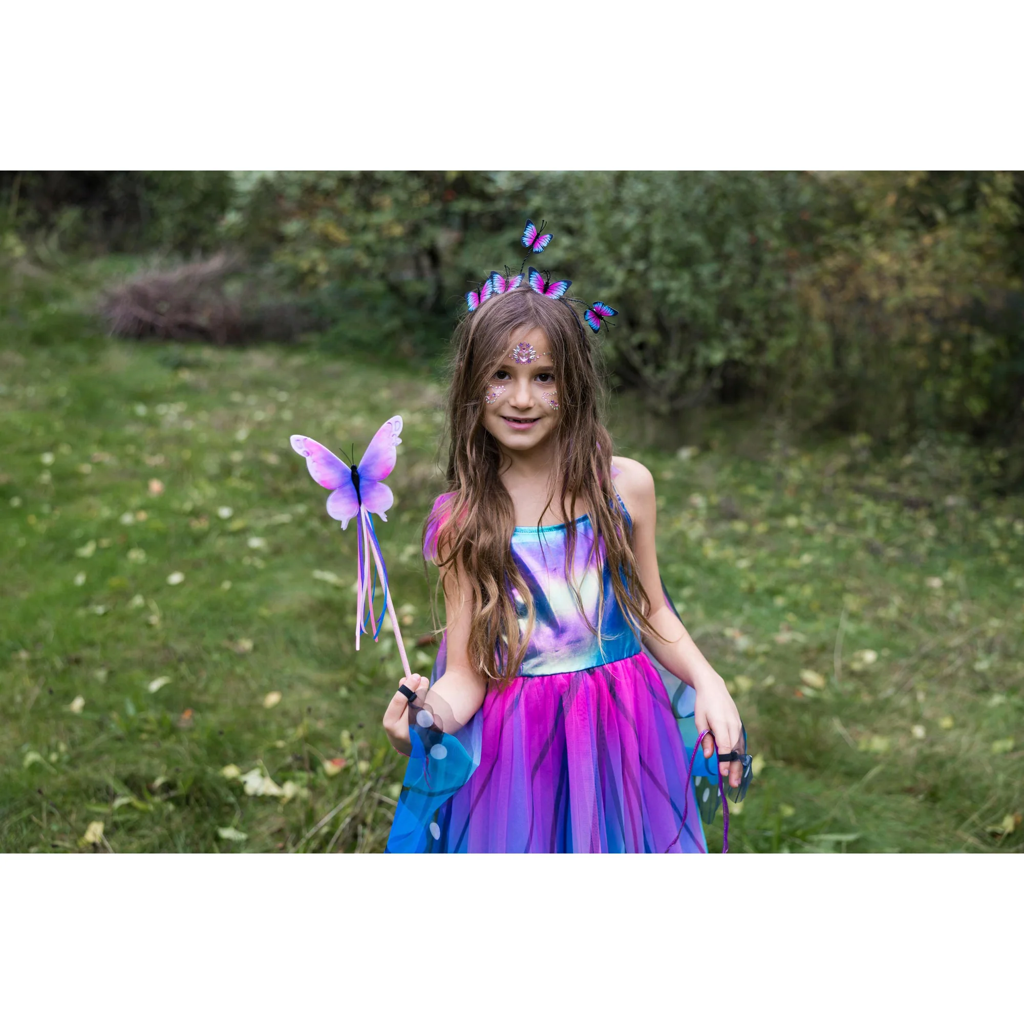 שמלת פרפר כחולה מסתובבת, עם כנפיים וקשת מתאימה. לגילאי 3 עד 8.